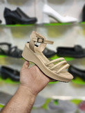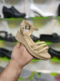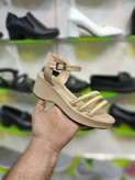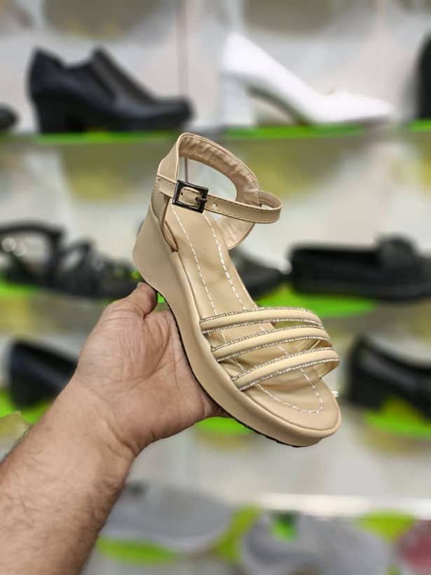 صندل زنانه کرمی با سه بند نگینی و زیره طبی، راحت، شیک و مناسب استفاده روزمره + ارسال رایگان