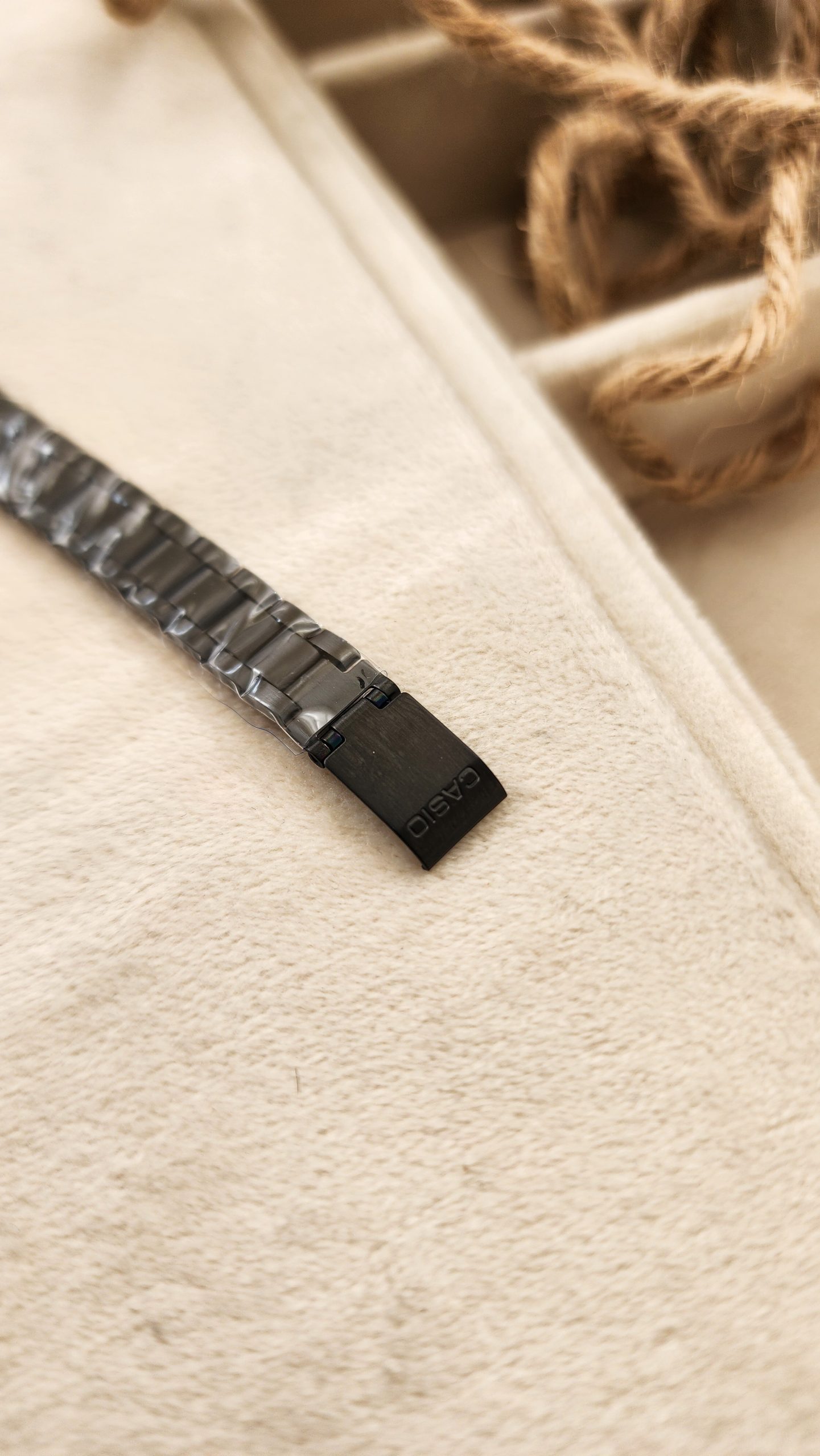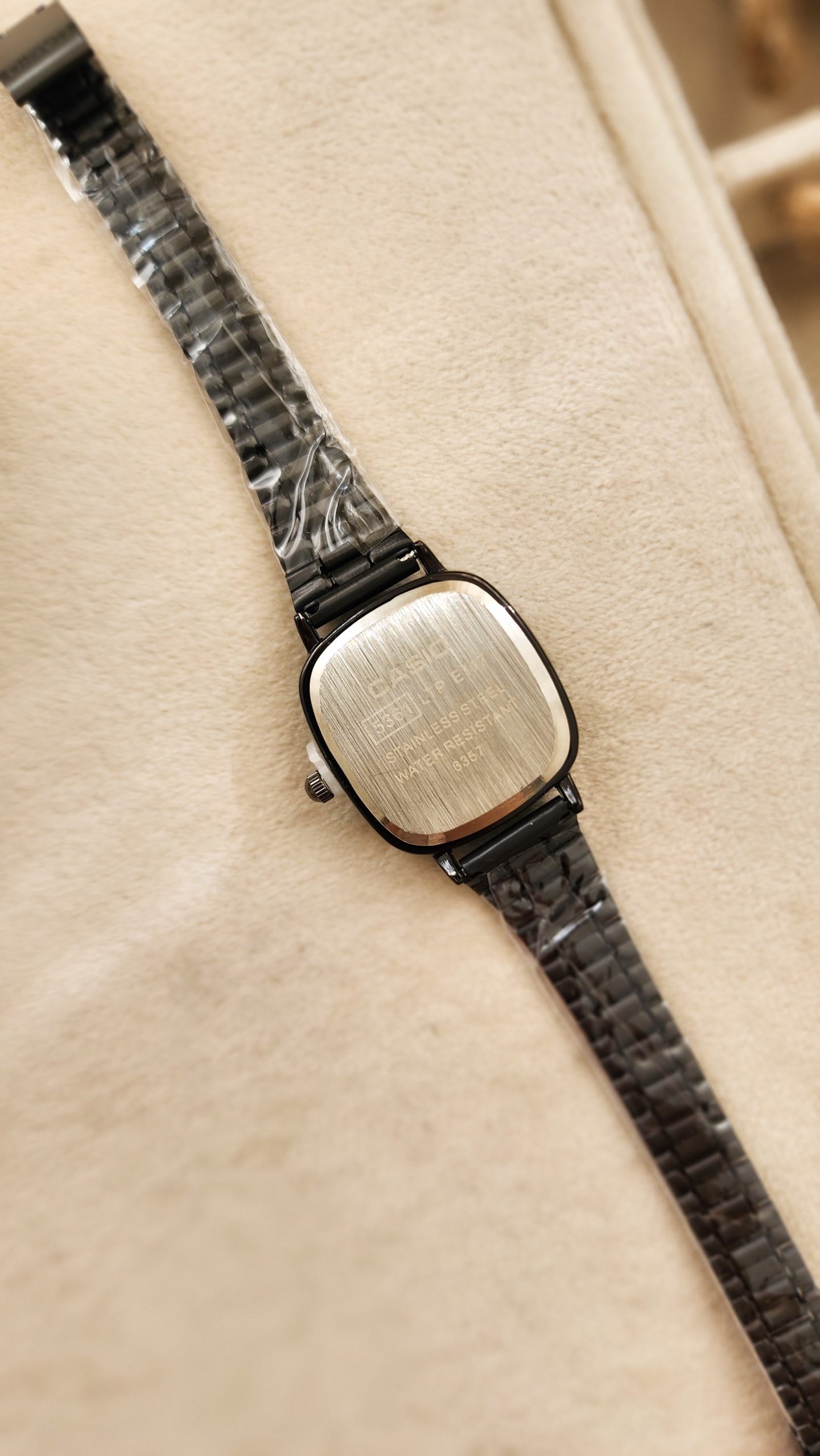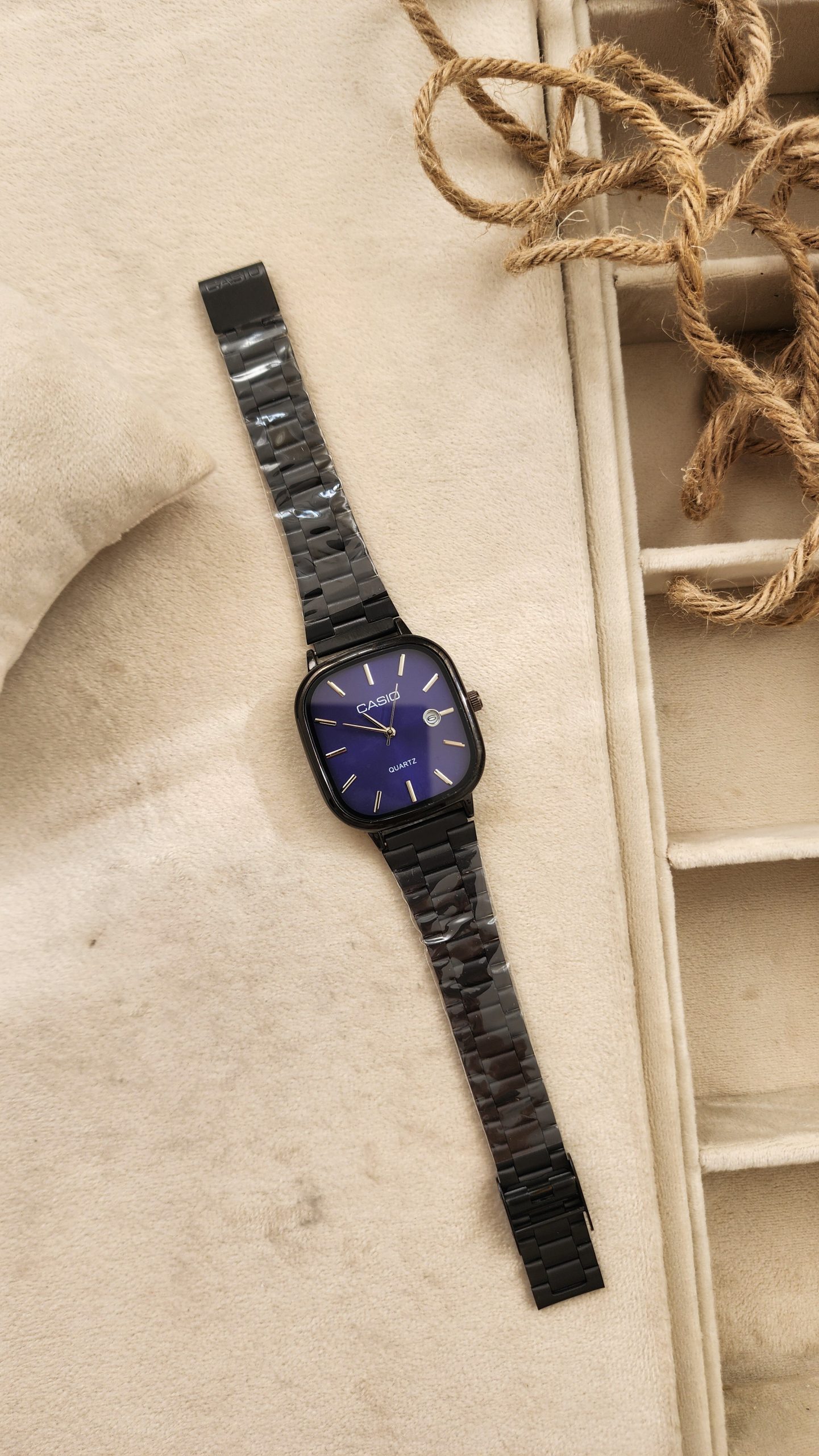 ساعت کاسیو مربعه بند مشکی صفحه سرمه ای (بند حصیری) با کیفیت عالی (زنانه) + ارسال رایگان