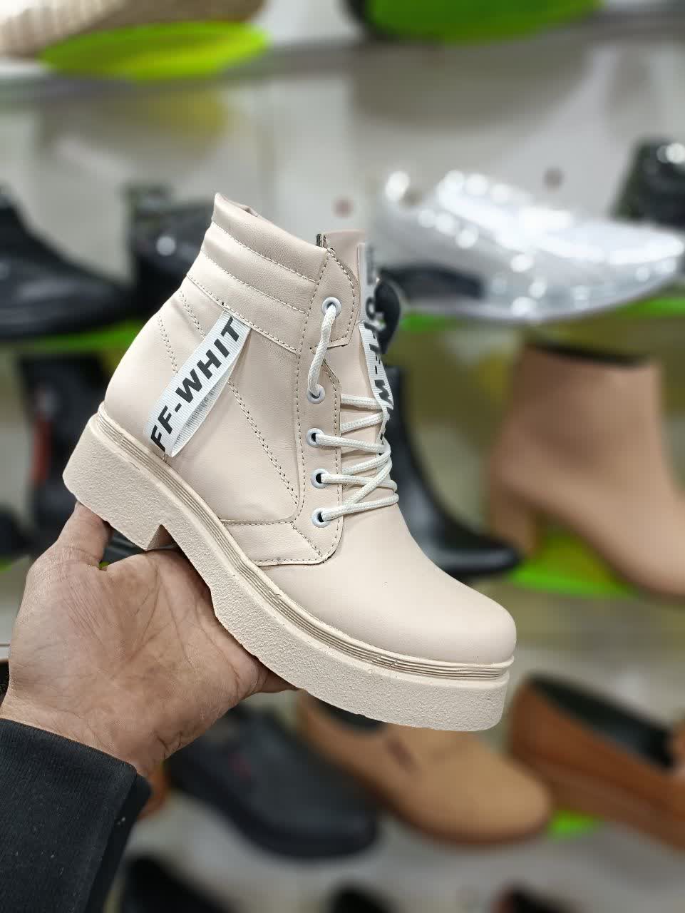 نیم بوت زنانه کرمی ff whit کد 2081 + ارسال رایگان