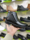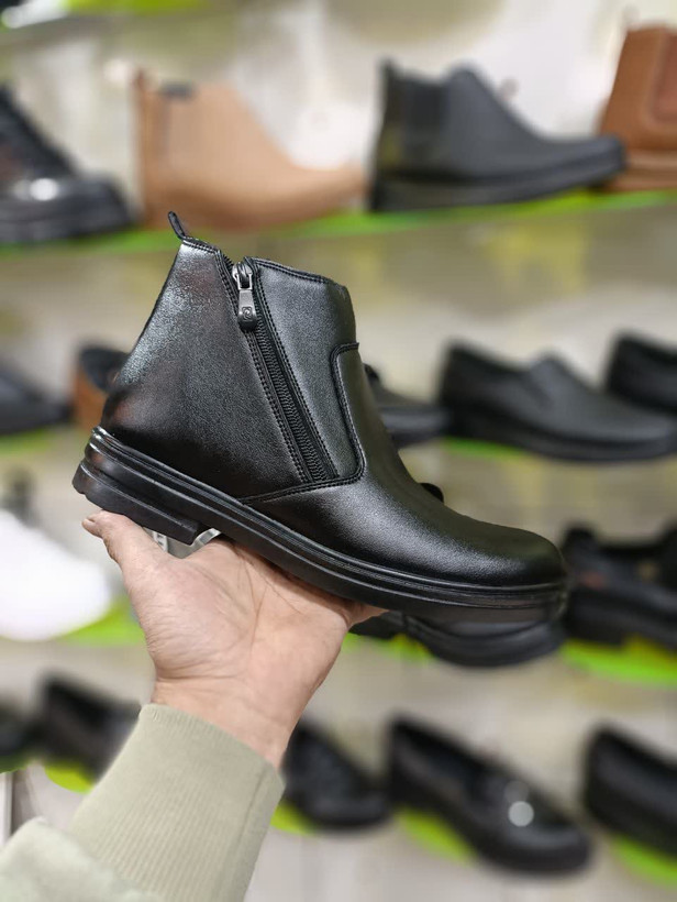 نیم‌بوت چرم صنعتی واکس خور | ضدسایش، راحت و مناسب همه سنین با طراحی دو زیپ کاربردی کد 2179